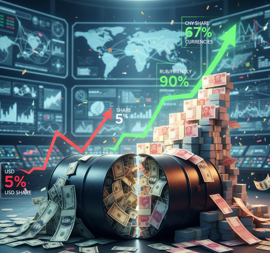 Доля доллара в расчетах за экспорт российской нефти рухнула до рекордно низких 5%. Всего несколько лет назад, в 2022 году, на американскую валюту приходилось 55% всех платежей, что свидетельствует о кардинальном изменении финансовой архитектуры российского энергоэкспорта.