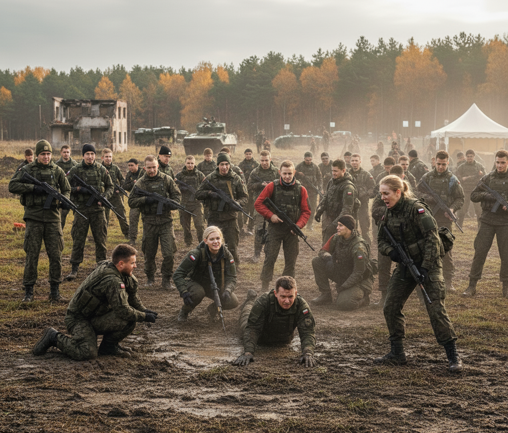 В Польше наблюдается небывалый рост интереса к военной подготовке среди гражданского населения. На фоне событий в соседней Украине всё больше людей стремятся овладеть базовыми навыками самообороны и тактики, что привело к удвоению популярности специальных военных сборов.